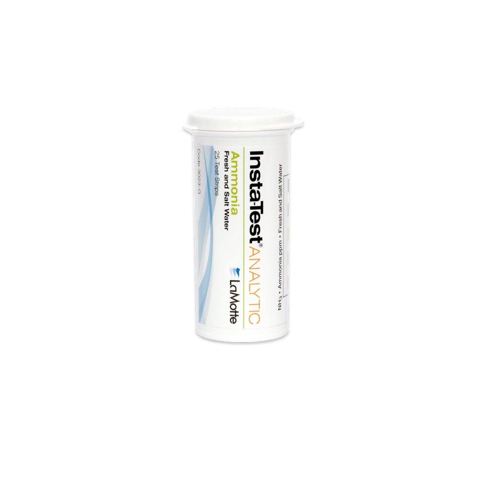 The Insta-Test Ammonia test strips provide a fast and easy method for testing ammonia levels in fresh or salt water. Range/sensitivity is 0, 0.5, 1.0, 3.0, 6.0 (ppm) NH3.