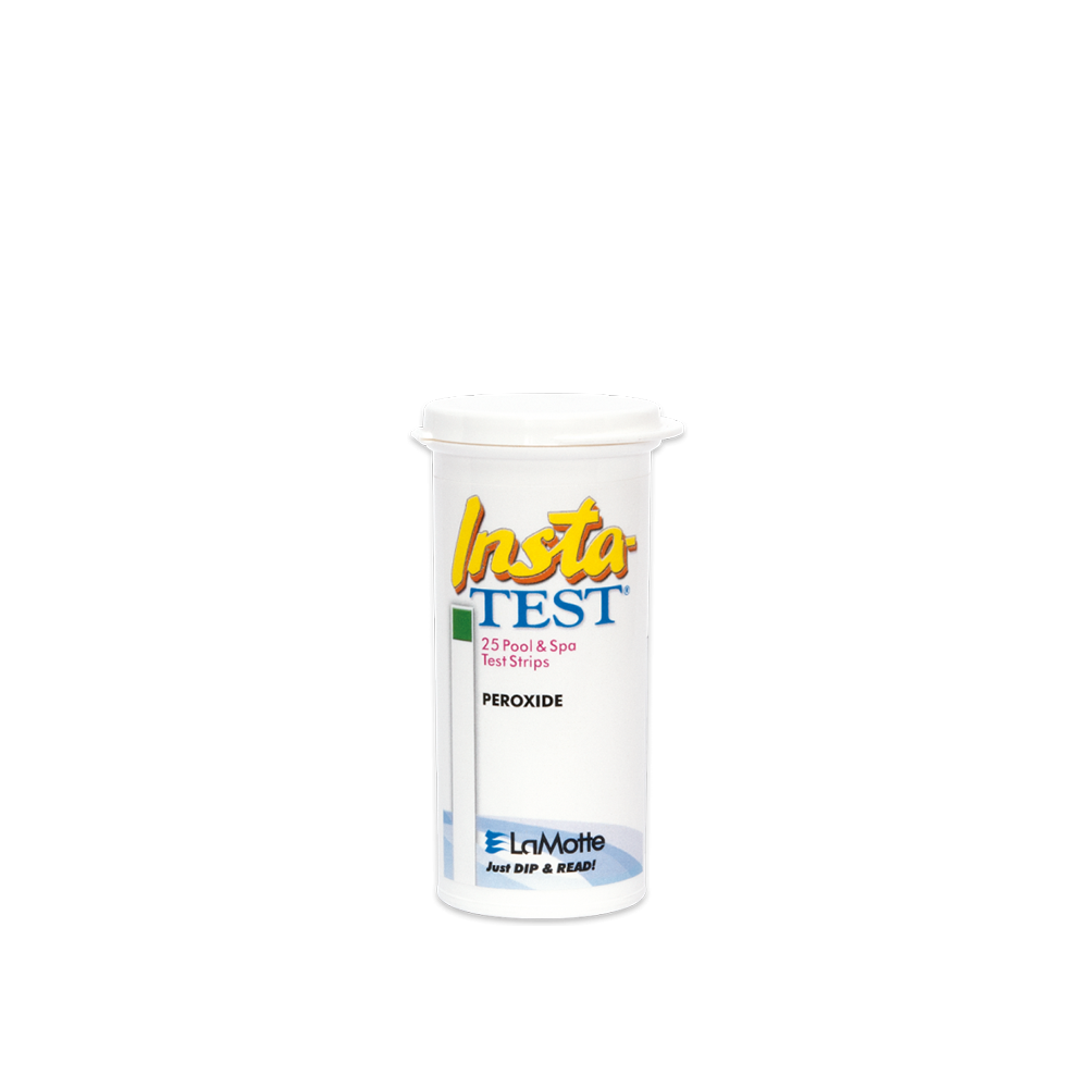 The Insta-TEST® Peroxide (Biguanide Shock) strip measures peroxide levels from 0 to 90 ppm. This test strip is a dip-n-read strip with results in 10 seconds. Each bottle includes 25 test strips packaged in a waterproof PopTop bottle with a hinged cap. The bottle has a molded desiccant liner, which protects the strips from moisture and UV light. The Insta-TEST® Peroxide strip is ideal for a quick test in your water.