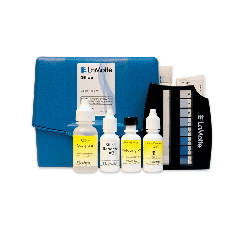 This kit tests for Silica using the Octa-Slide 2 Comparator. Range and sensitivity is 0.5, 1.0, 2.0, 3.0, 4.0, 6.0, 8.0, 10.0 ppm or 5, 10, 20, 30, 40, 60, 80, 100 ppm SiO2.